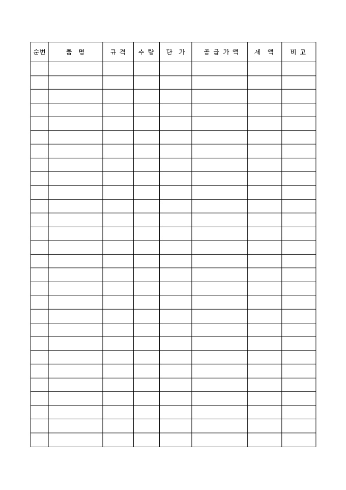 9,000원/월일반견적서 서식에 순번이 포함된 양식입니다.
