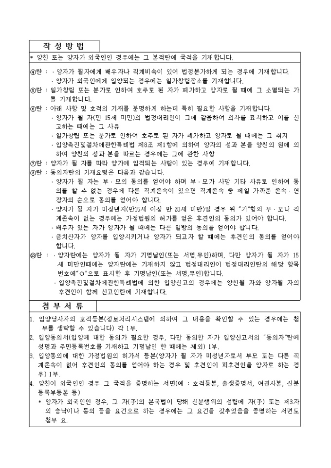 9,000원/월시(구),읍, 면 사무소에 입양신고를 할 때 사용하는 양식입니다.