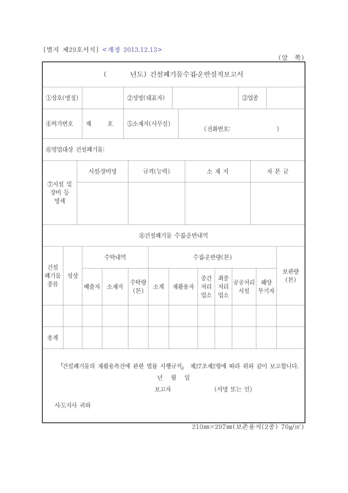 폐기물 수집운반실적 보고서 (수집, 운반자용)