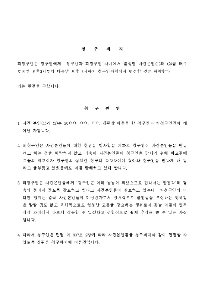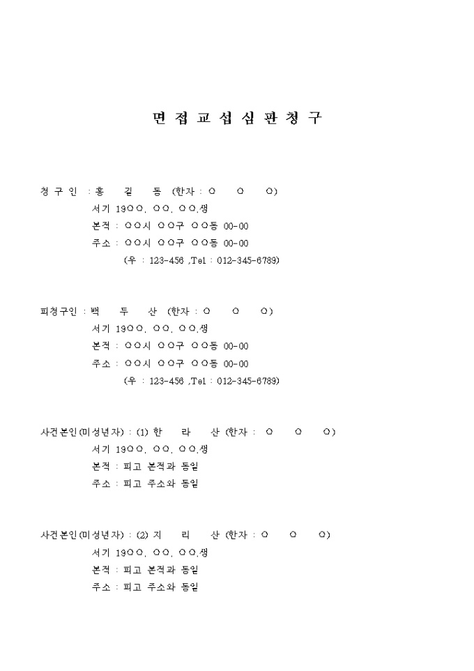 9,000원/월친권자의 방해로 미성년의 자를 만나지 못하는 경우에 법원의 결정을 신청할 때 사용하는 서식입니다.