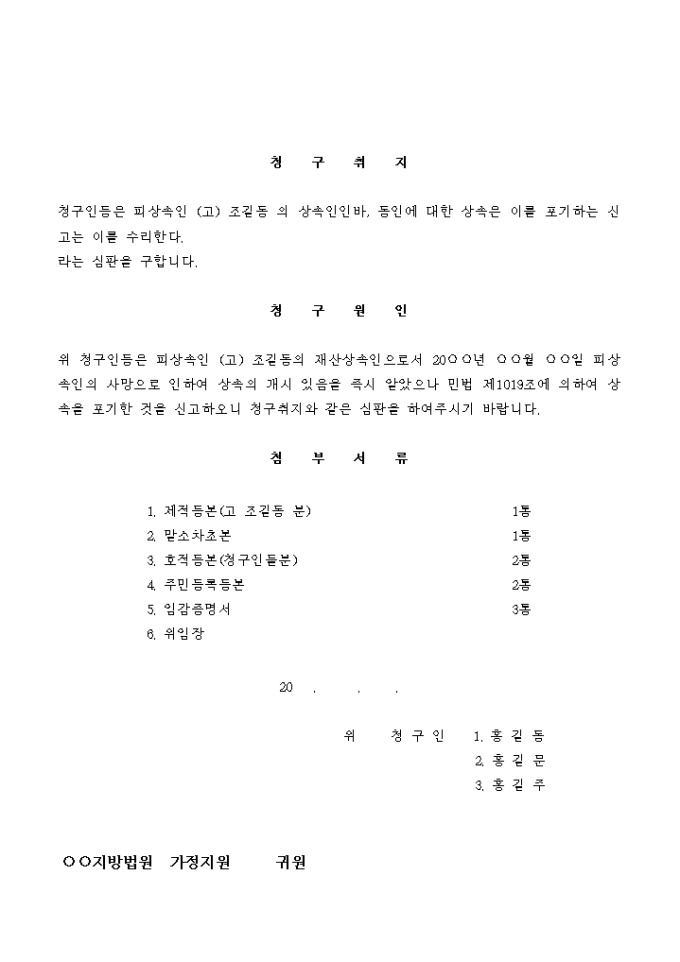 상속인 상속포기신고서
