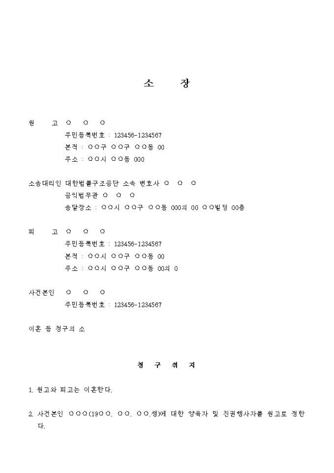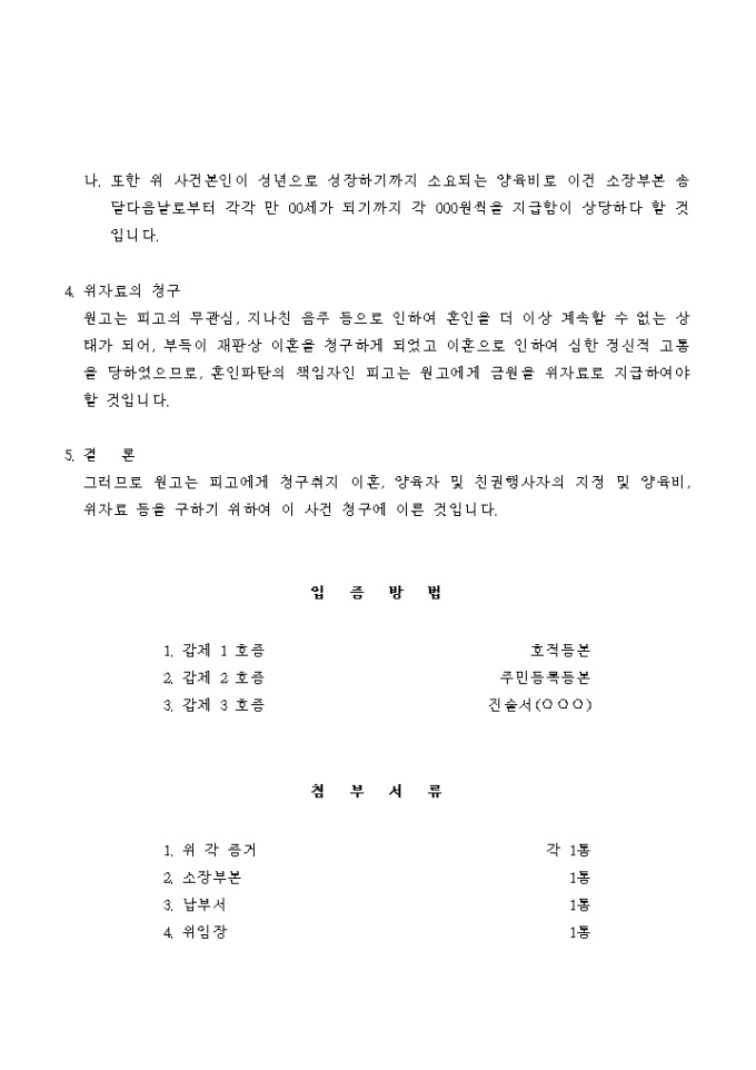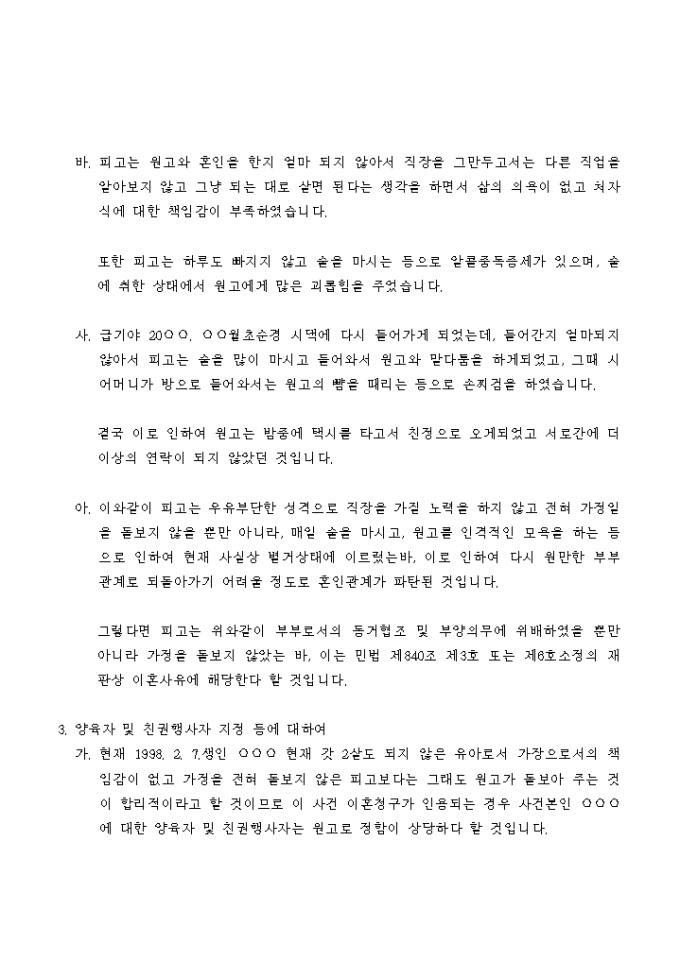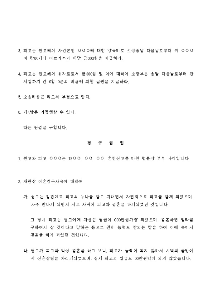 남편의 부당한 대우를 이유로 이혼하는 경우에 사용하는 서식입니다.