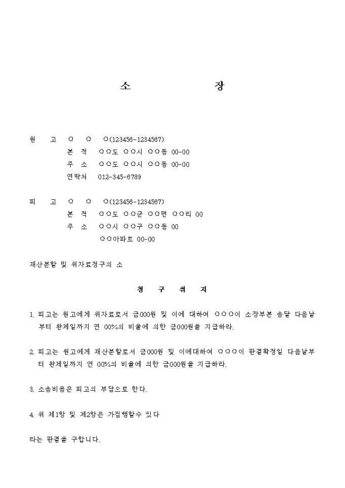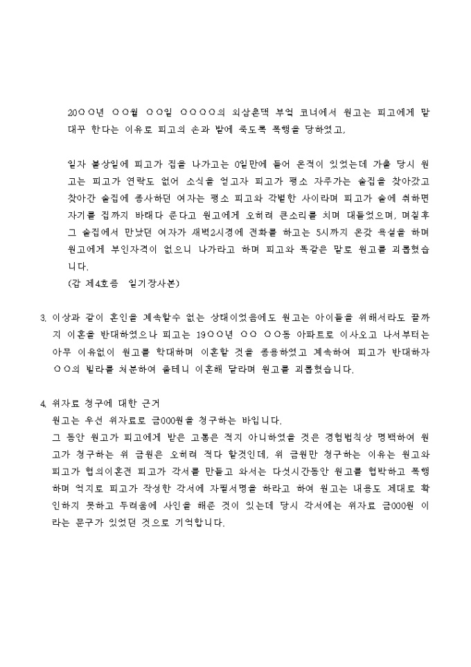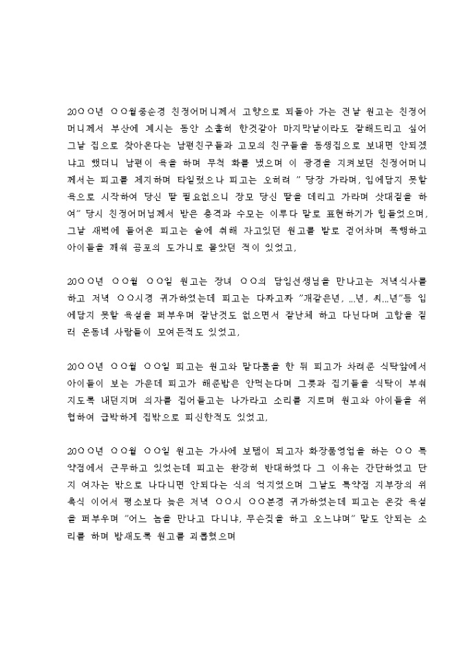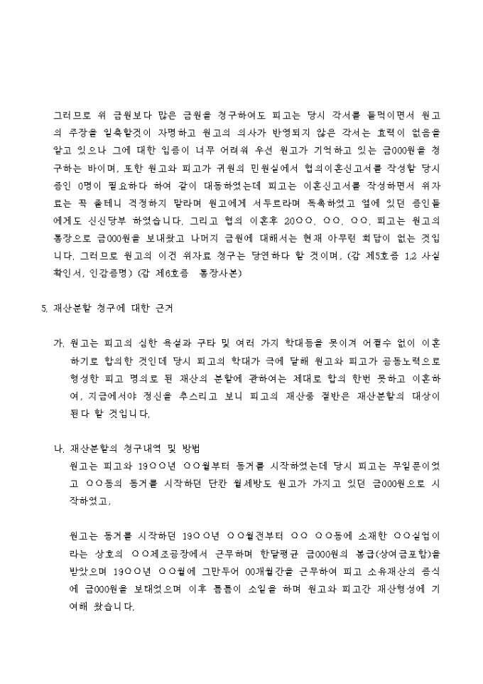 강요에 의해 협의이혼한 후에 재산분할 및 위자료청구 소송을 제기하는 경우에 사용하는 서식입니다.