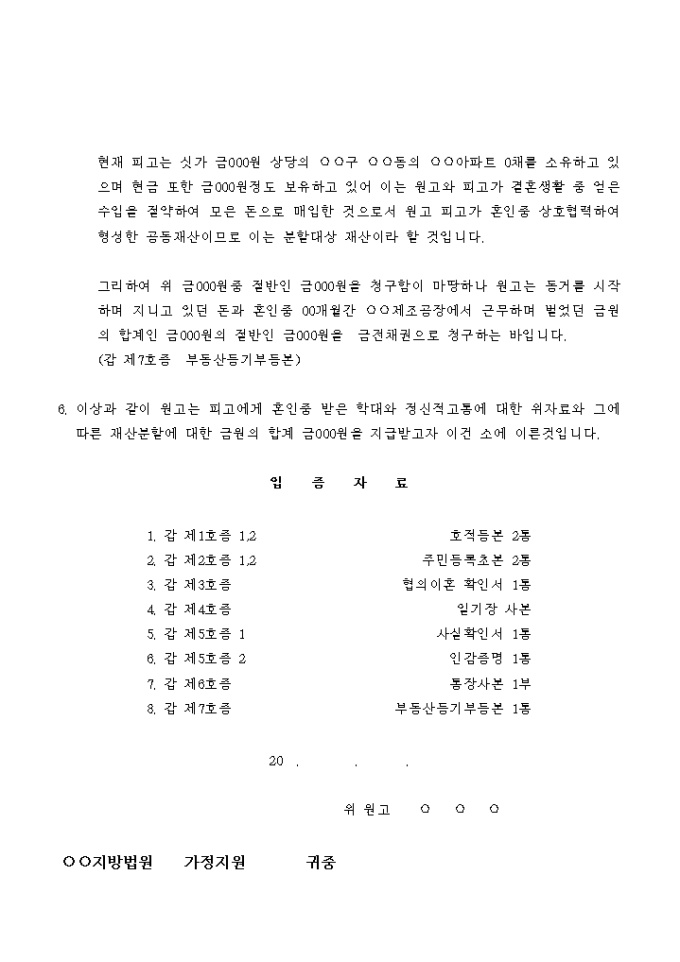 재산분할 및 위자료청구의 소