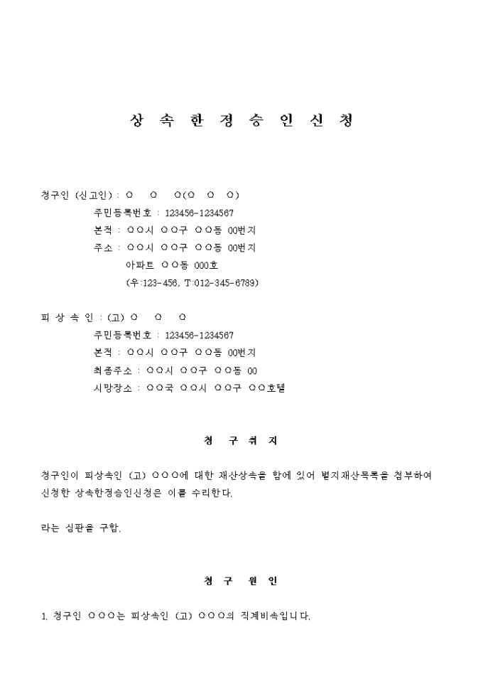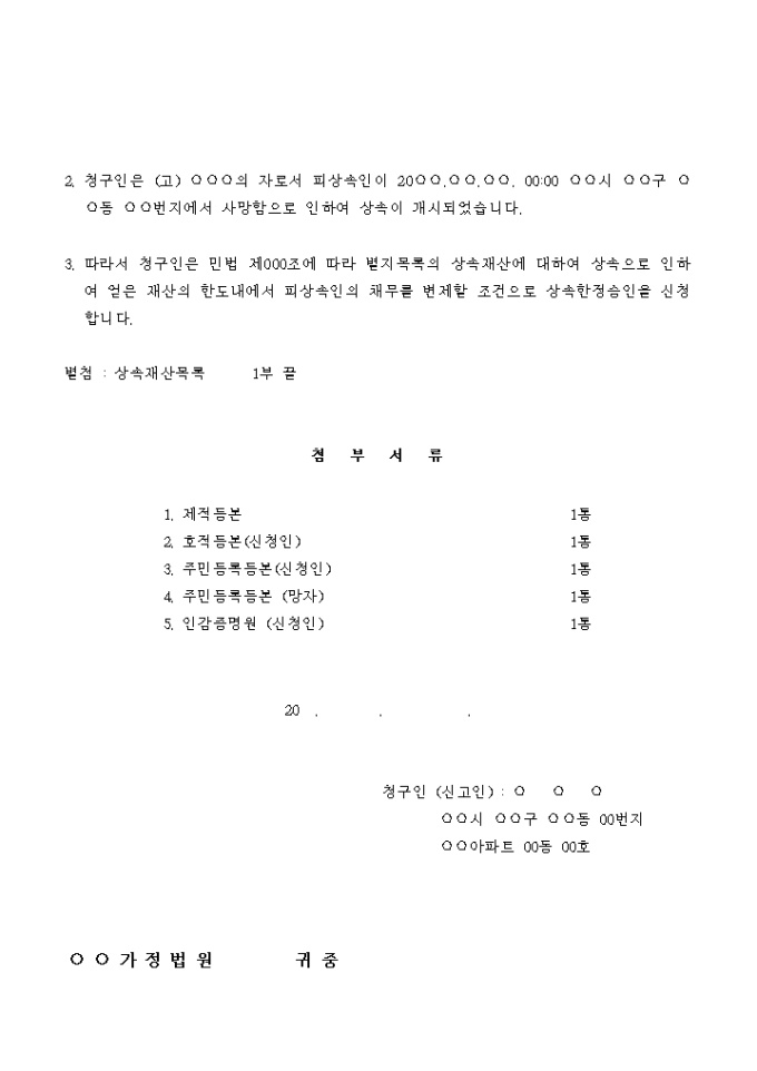 9,000원/월상속의 한정승인을 신청할 때 사용하는 서식입니다.