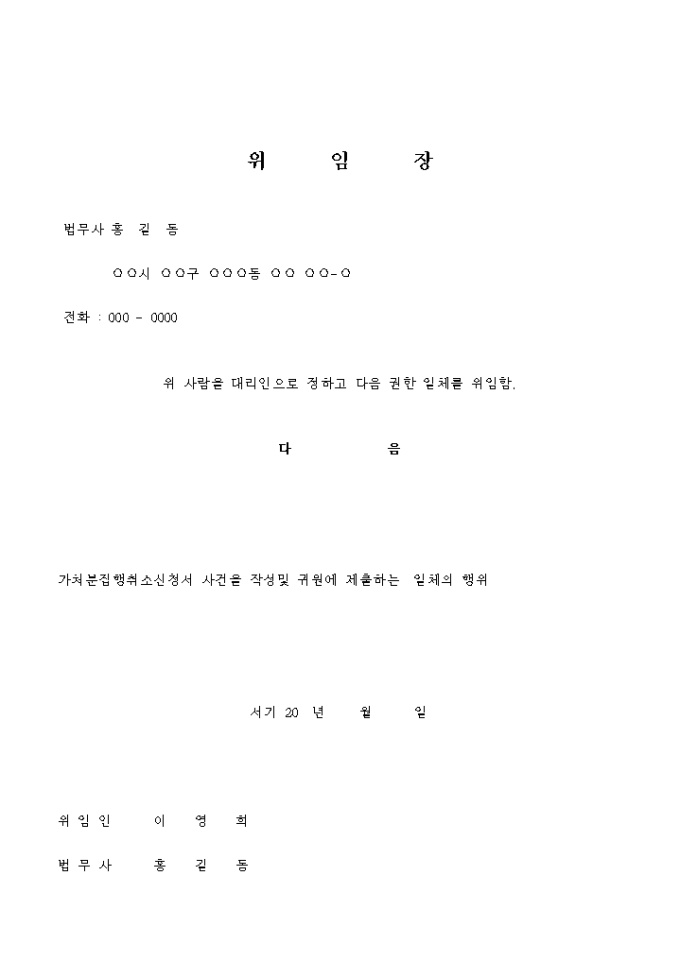 9,000원/월가처분집행을 취소할 것을 청구하는 경우에 사용하는 위임장입니다.