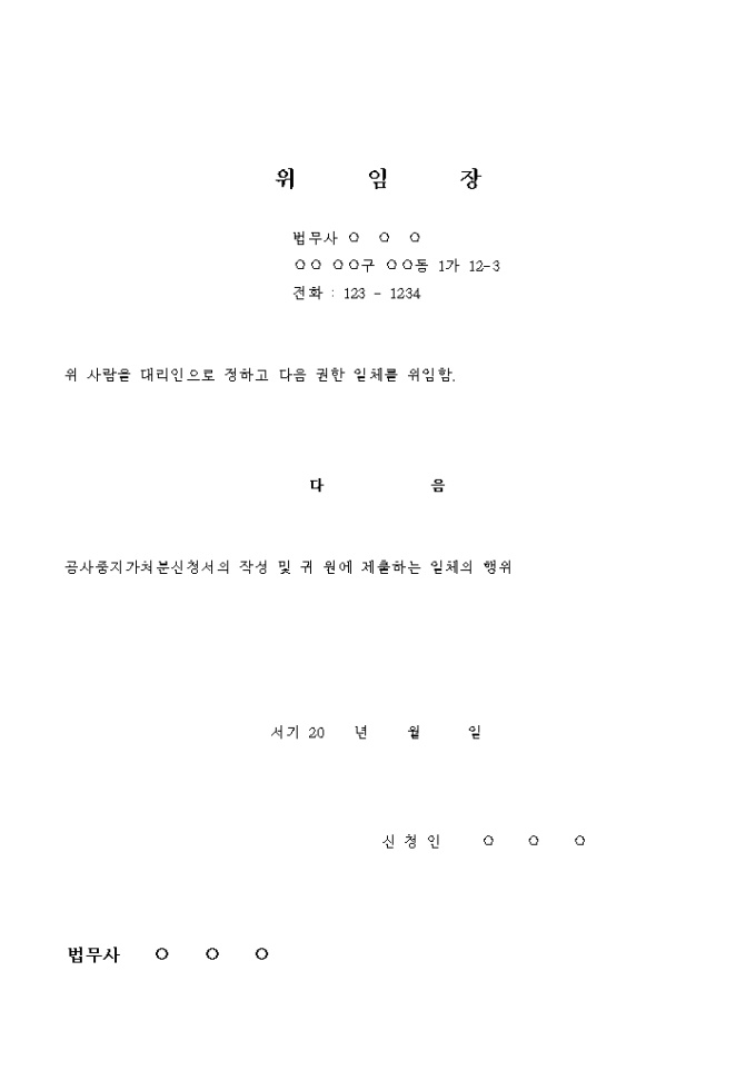 9,000원/월공사중지 가처분을 신청하는 경우에 사용하는 위임장입니다.