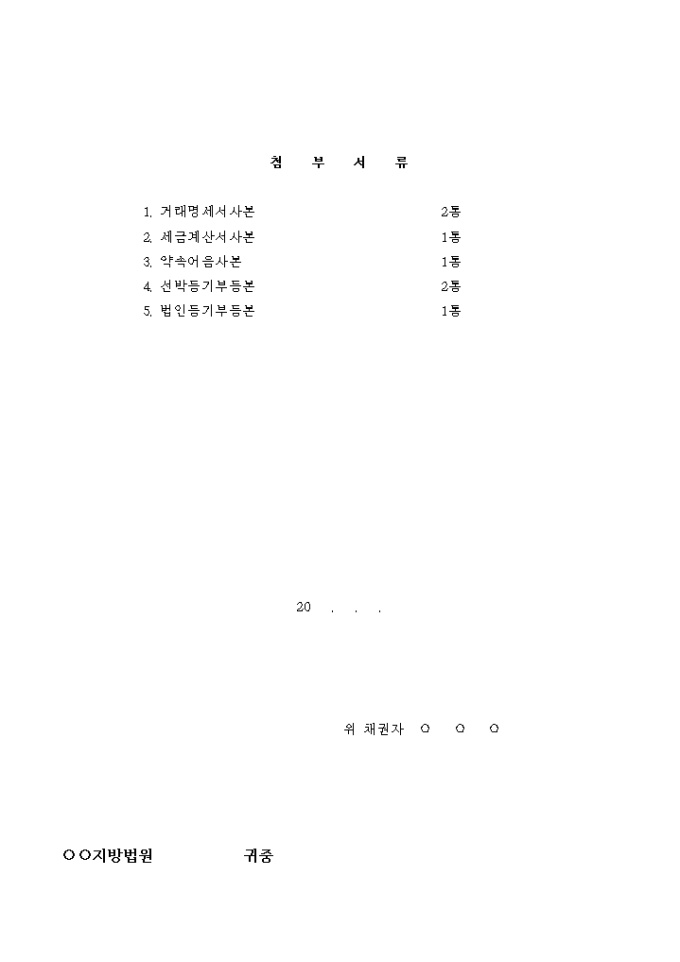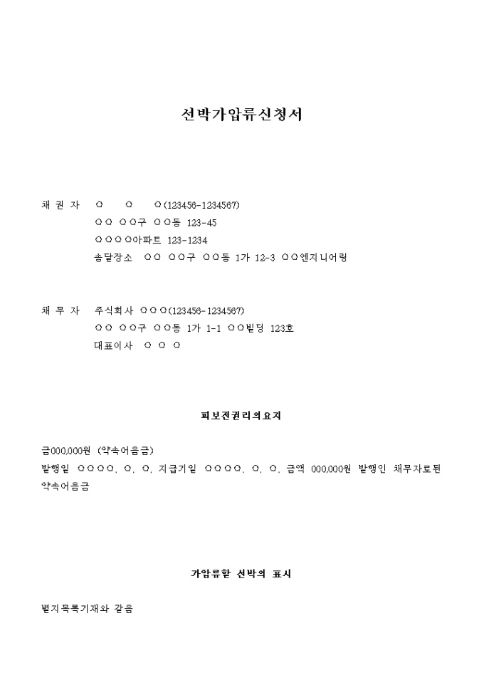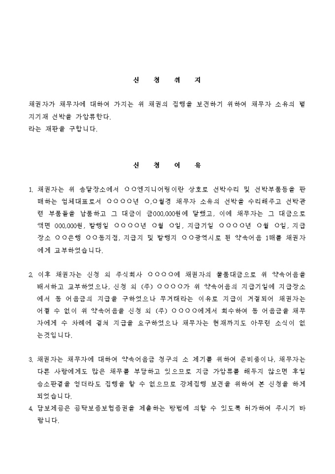 9,000원/월약속어음금의 지급을 보전하기 위해 선박 가압류를 신청할 때 사용하는 서식입니다.
