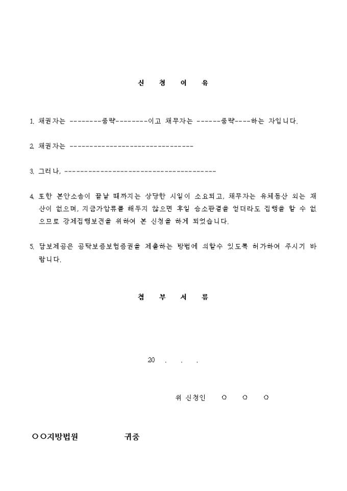 유체동산 가압류 신청서(기본)