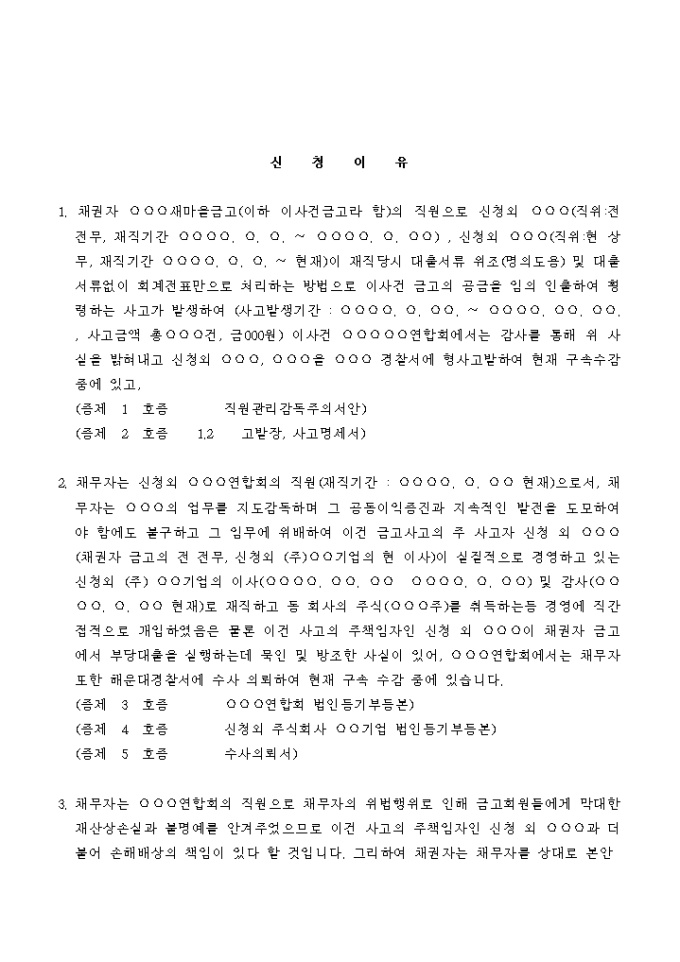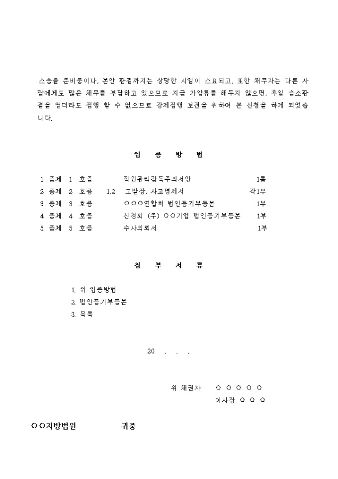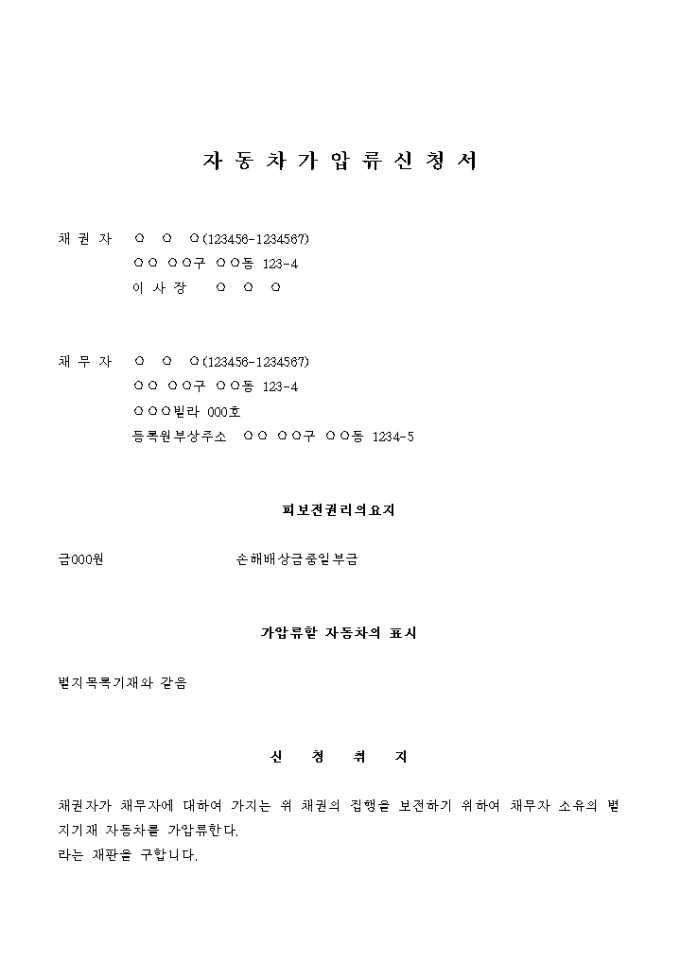 9,000원/월업무상배임죄의 피의자인 채무자에게 자동차 가압류를 신청하는 경우의 서식입니다.