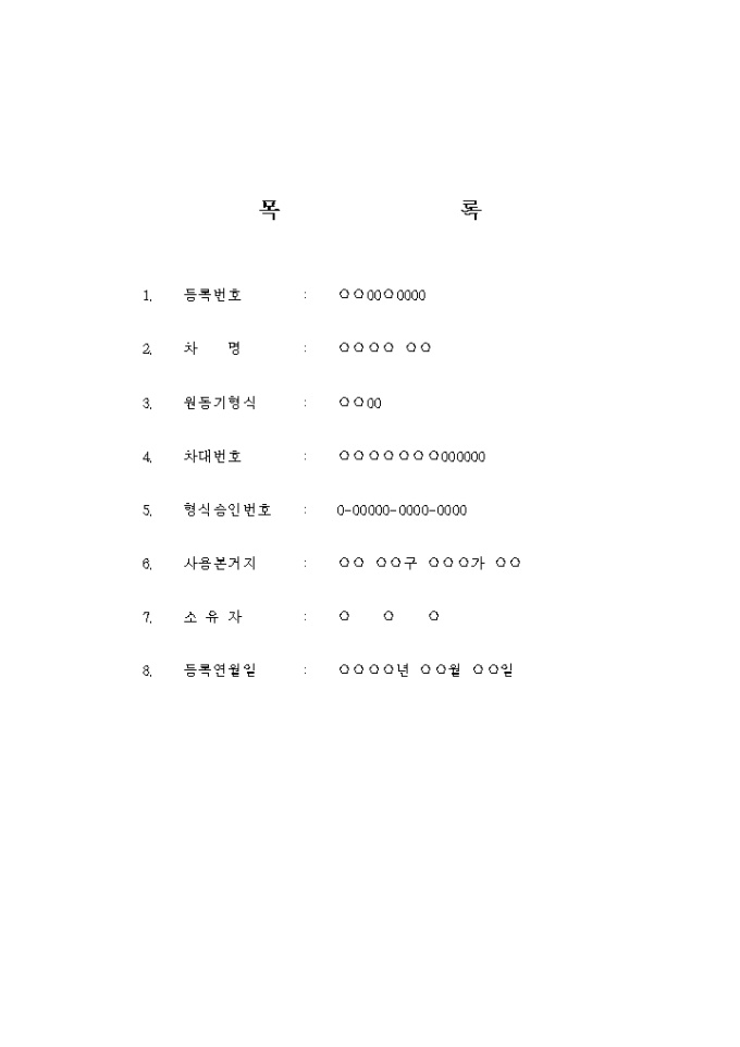 9,000원/월자동차 가압류 신청서에 첨부하는 가압류의 대상이 되는 자동차의 목록입니다.