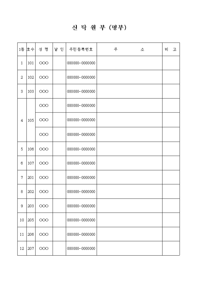 9,000원/월신탁계약 자들의 성명과 그 내용을 기재하는 원부입니다.