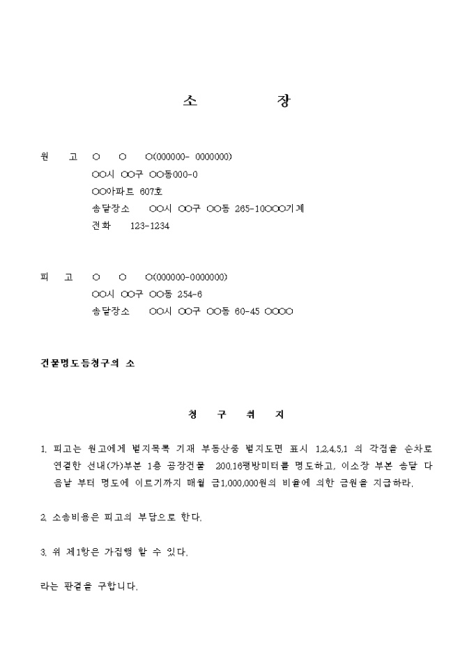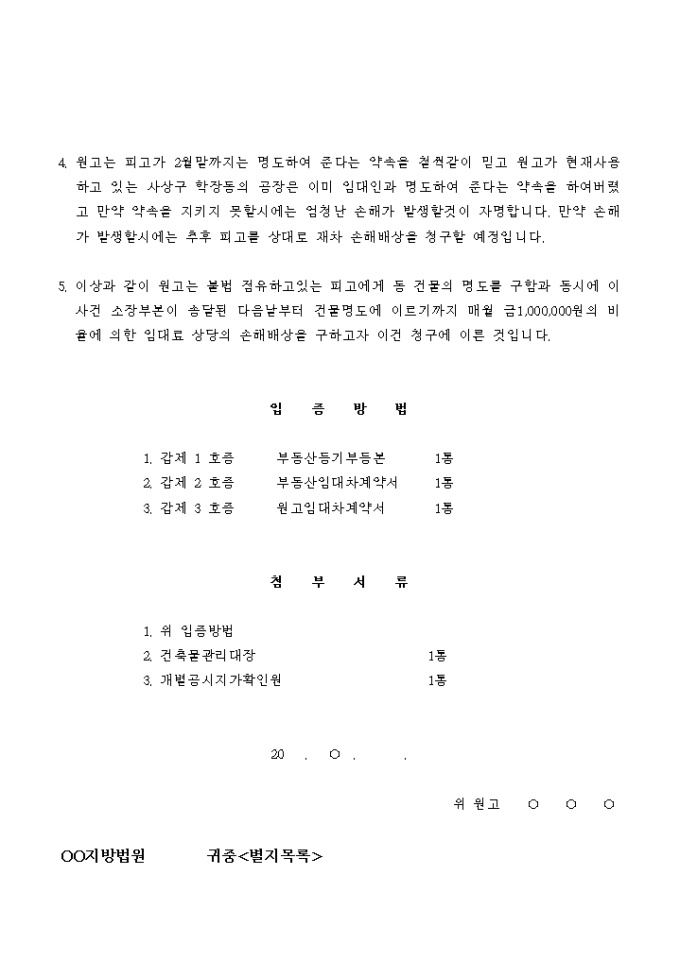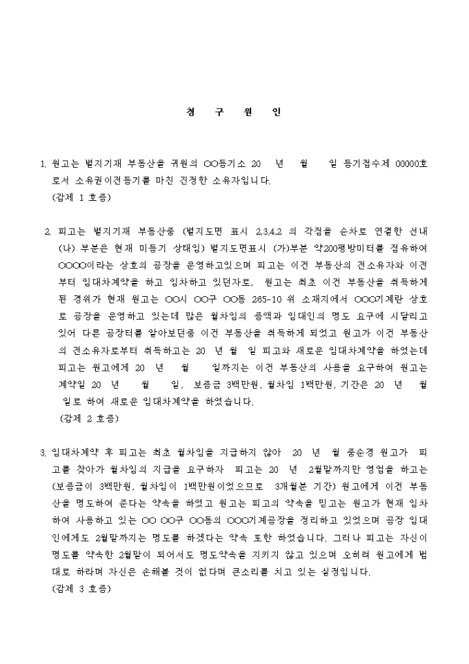 9,000원/월피고에게 공장건물의명도를 청구하는 소송을 제기 할 때 사용하는 서식입니다.