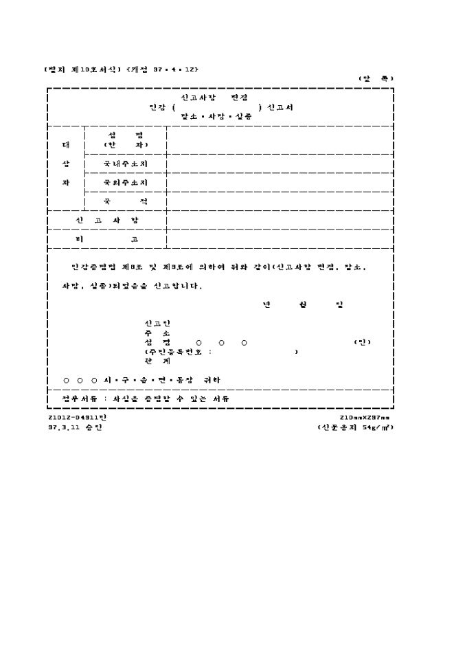 인감(신고사항 변경, 말소, 사망, 실종)신고서