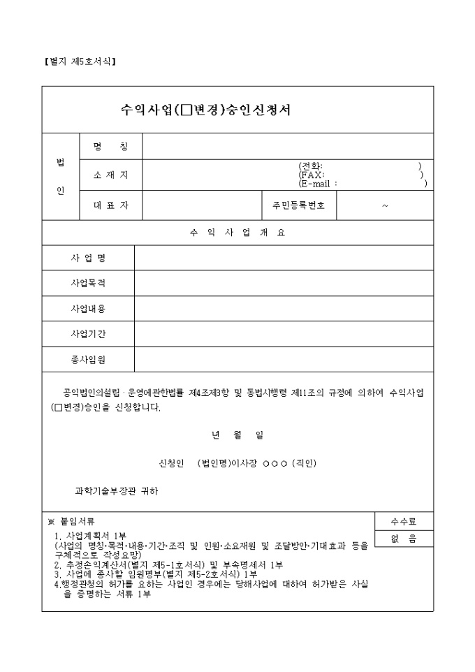 수익사업(변경)승인신청서(별지 제5호서식)