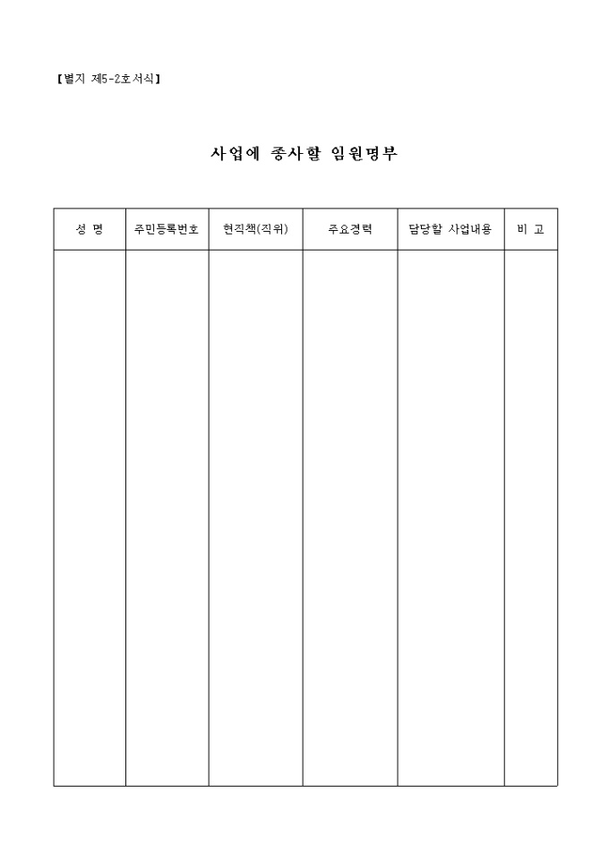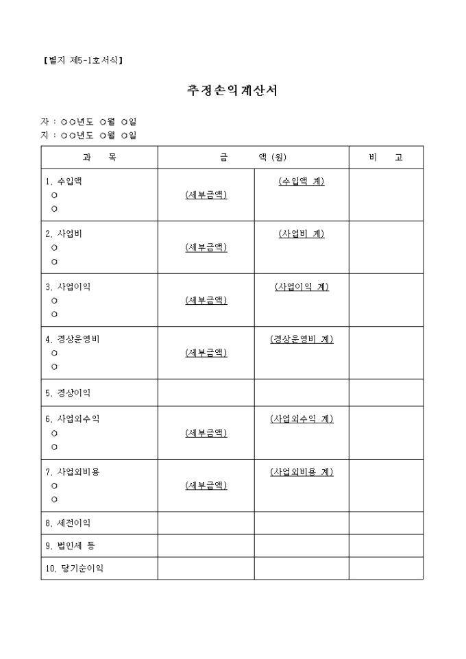수익사업에 대한 승인신청서로서 사업명, 사업목적, 기간, 종사임원을 작성하는 란으로 구성되어 있으며 추정손익계산서와 임원명부가 첨부되어 있습니다.