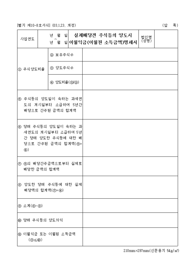 9,000원/월이 서식은 배당전 상태의 주식을 다른 사람에게 양도시 이익금에대한 내용을 기입하는 문서입니다.