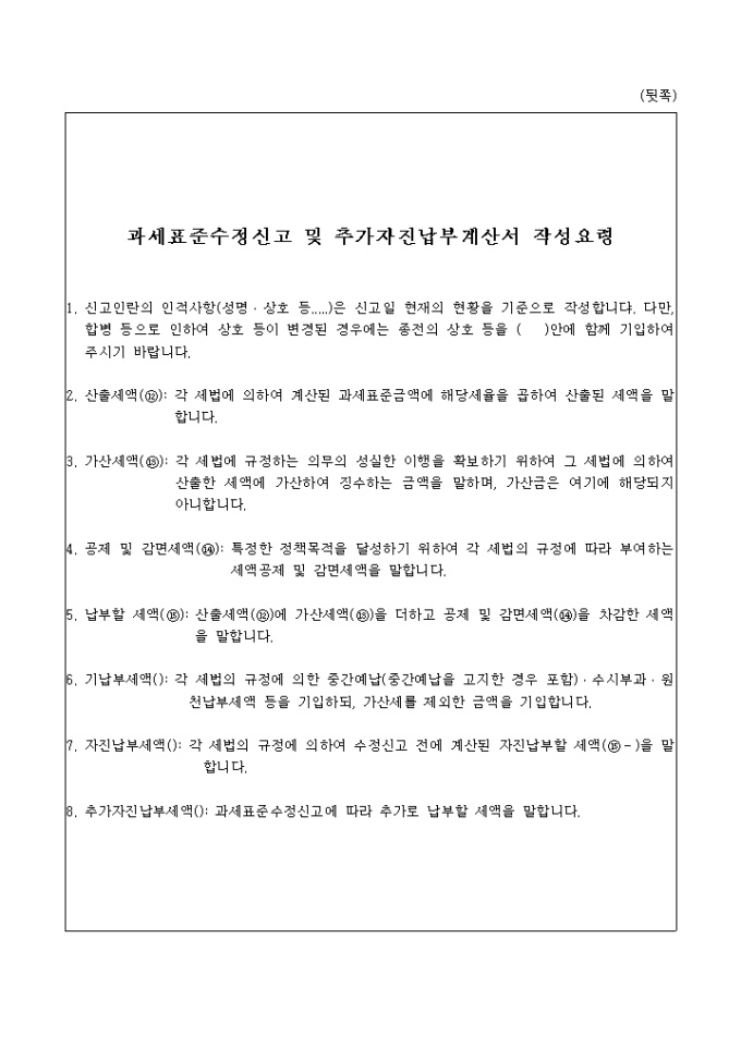 9,000원/월16호서식은 과세표준수정시고서 및 추가자진납부계산서로서 신고인의 신상명세와 신고내용을 기입합니다.