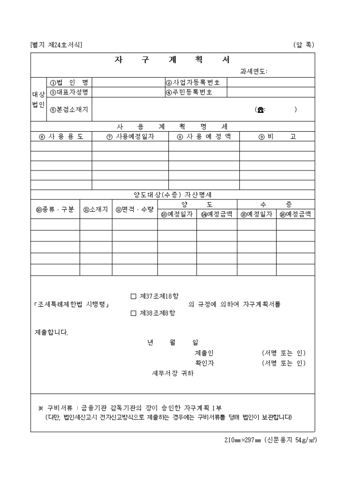 9,000원/월별지 제24호서식은 자구계획서입니다.