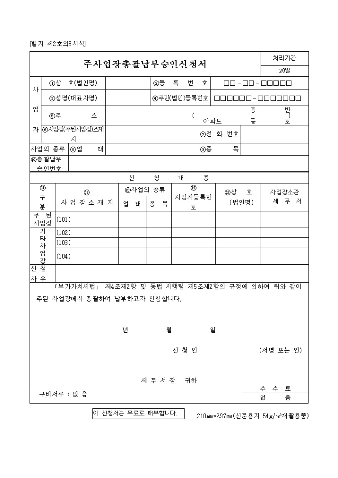 주사업장 총괄납부 승인신청서(05.03.11(별지 제2호의3서식)