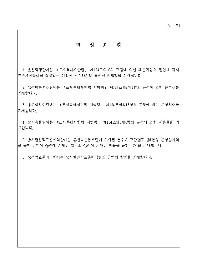 선박표준이익산출명세서(05.02.28(별지 제3호서식 부표)