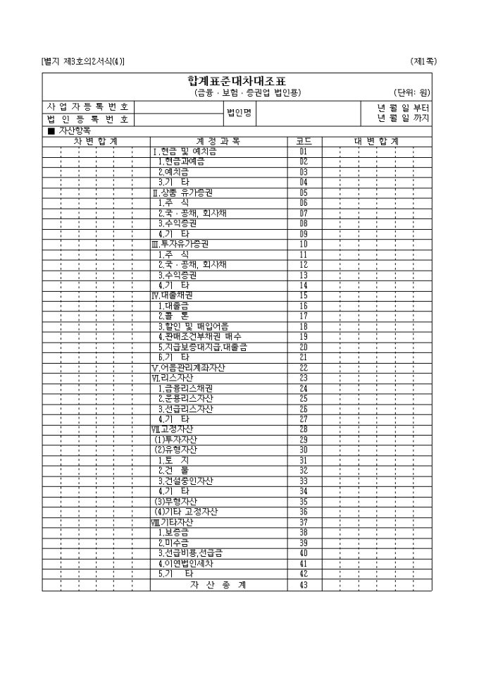 합계표준대차대조표(금융·보험·증권업법인용)(05.02.28(별지 제3호의2서식)