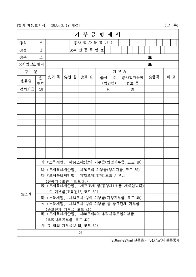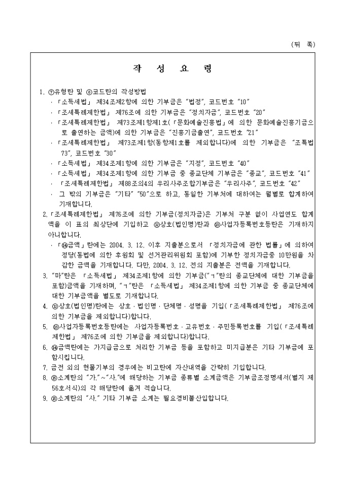 9,000원/월제45호서식은 기부금 명세서입니다.