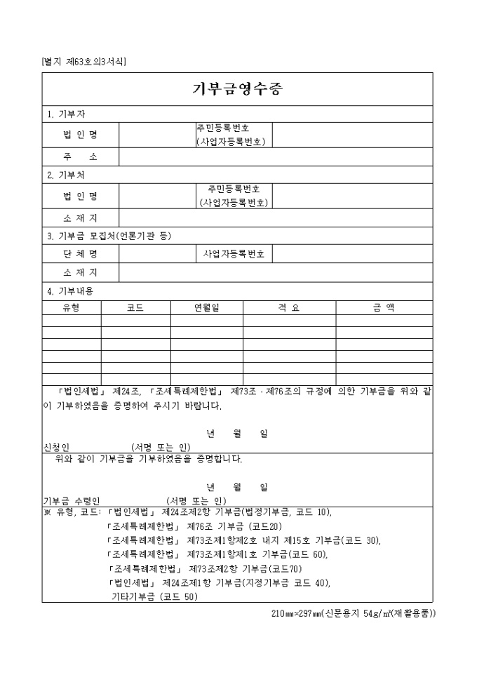 9,000원/월제 63호의3서식은 기부금 영수증입니다.