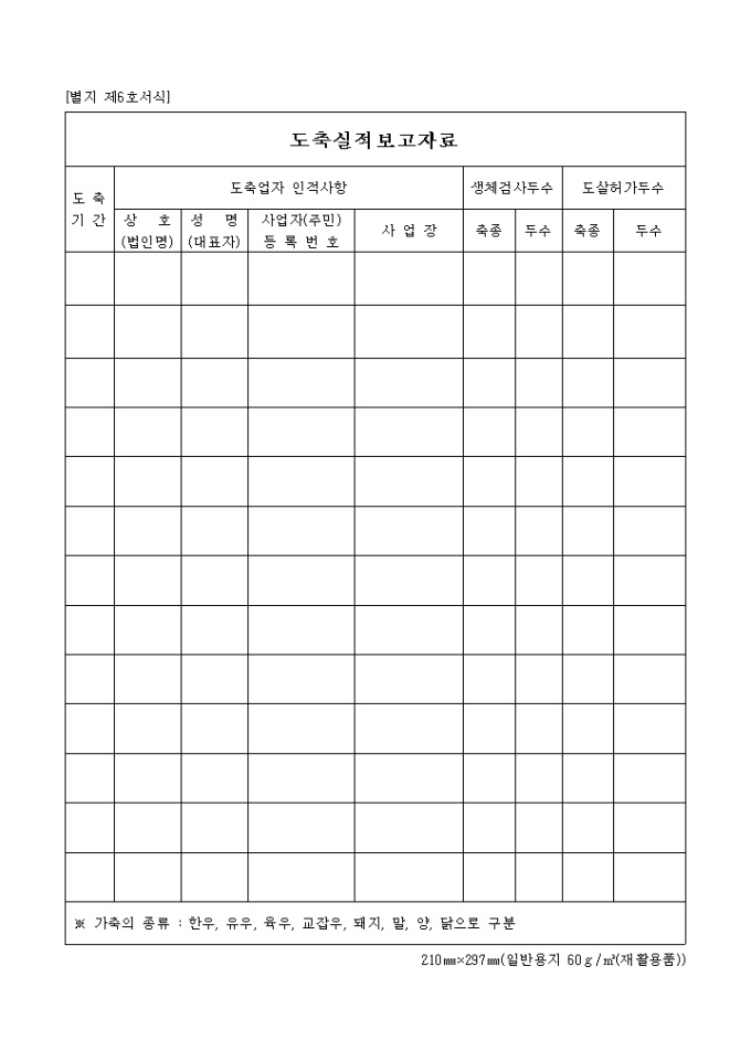 9,000원/월이 서식은 도축 실적 보고 자료 입니다.