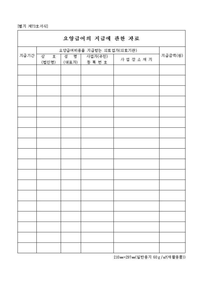 요양급여의지급에 관한자료(04.01.12(별지 제73호서식)