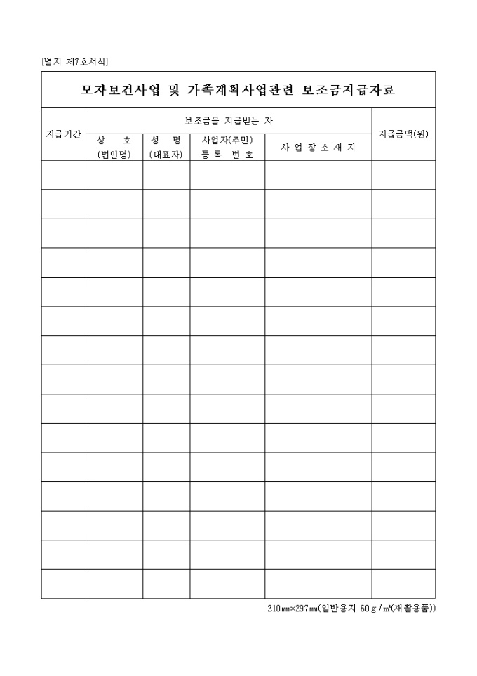 9,000원/월이 서식은 모자보건 사업 및 가족 계획 사업 관련 보조금 지급 자료입니다.