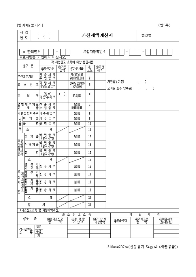 9,000원/월이 서식은 가산세액 계산서로서 각 사업연도 소득에 대한 법인세분을 기록합니다