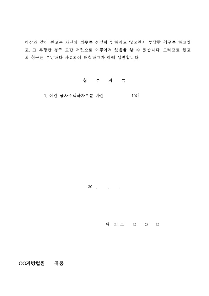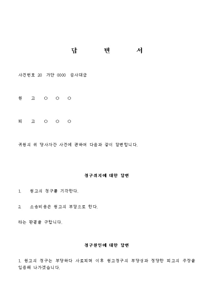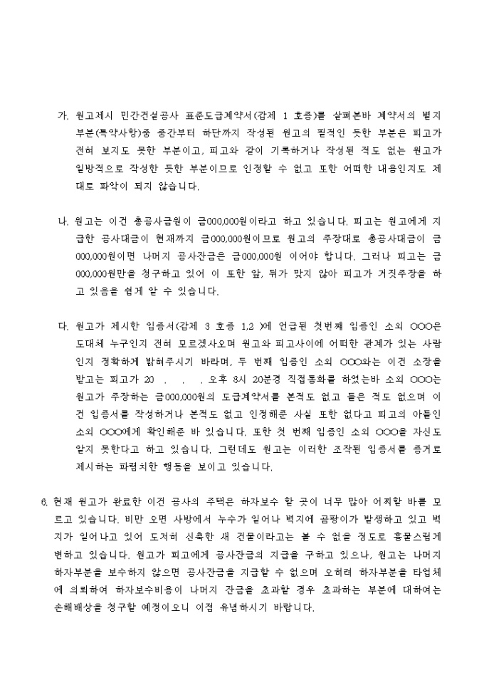 답변서(피고_공사대금)