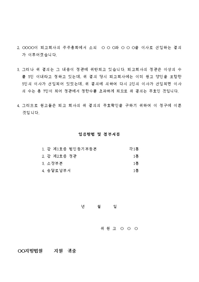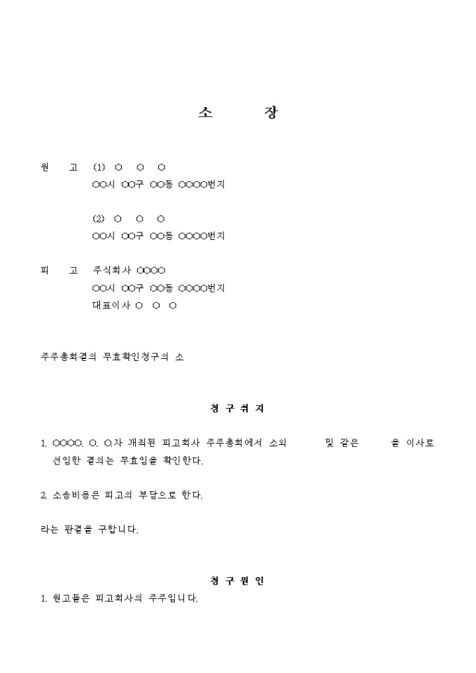 9,000원/월주주총회결의가 무효임을 구하는 소송을 할 때 사용하는 소장입니다.
