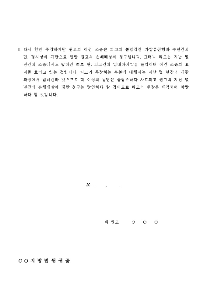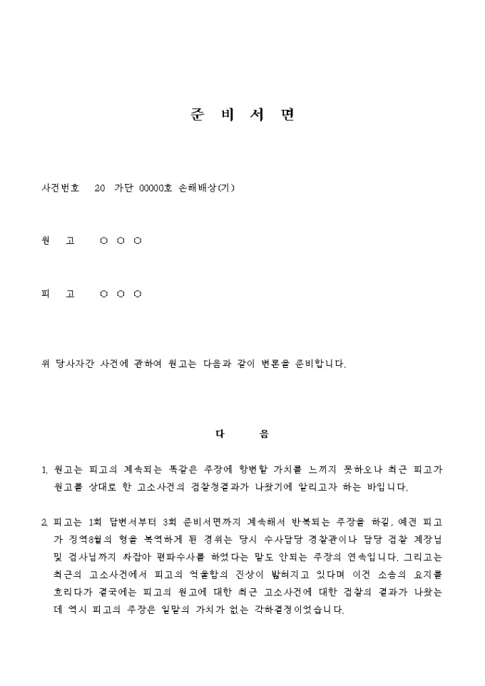 9,000원/월손해배상청구소송의 피고의 답변서에 대한 원고의 준비서면입니다.