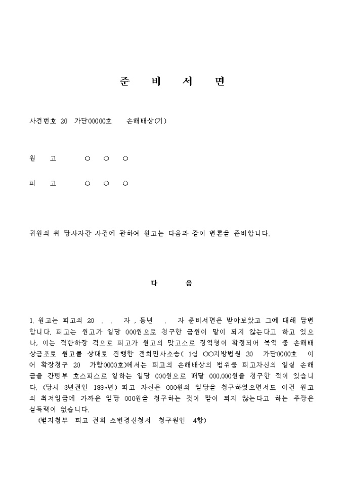 9,000원/월손해배상 청구소송의 준비서면입니다.