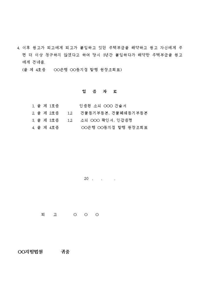 9,000원/월피고가 원고의 주장에 반박하는 구체적 증거를 제시하는 준비서면(답변서)입니다.