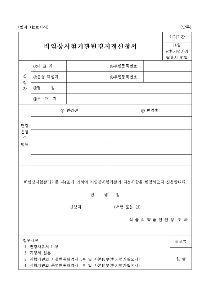 비임상시험기관변경지정신청서(별지 제2호서식)