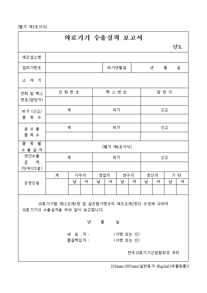 9,000원/월의료기기법 제12조제2항 및 같은법시행규칙 제15조제2항의 규정에 의거한 의료기기의 수출실적 보고 서식입니다.