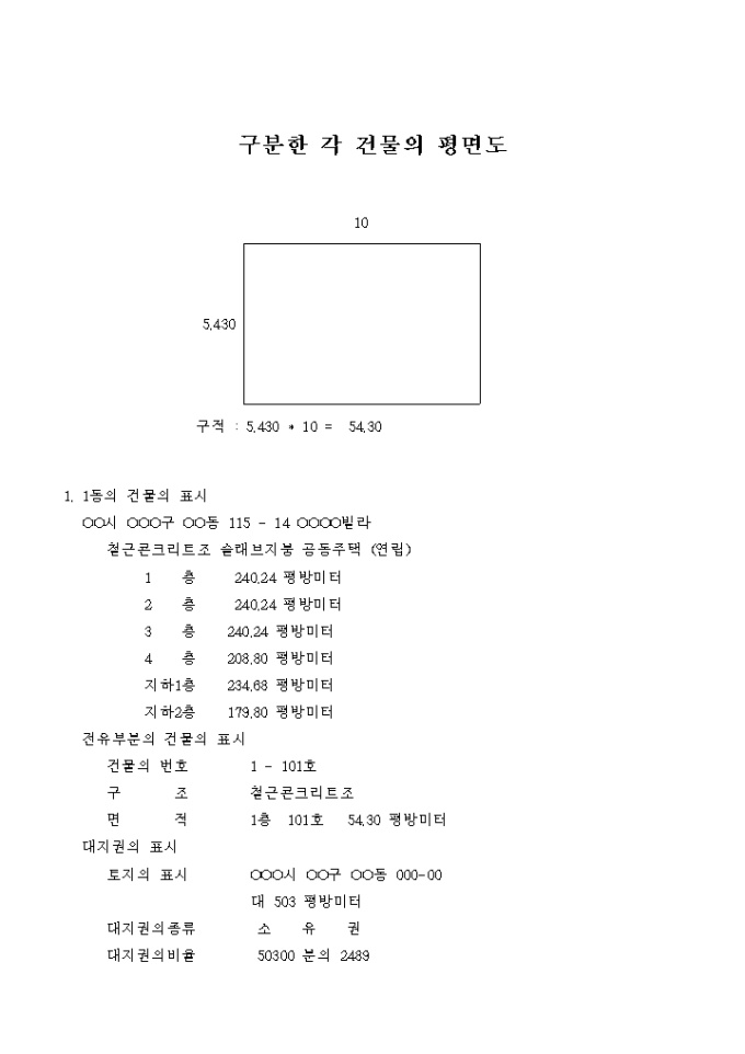 9,000원/월구분한 각 건물의 도면입니다.