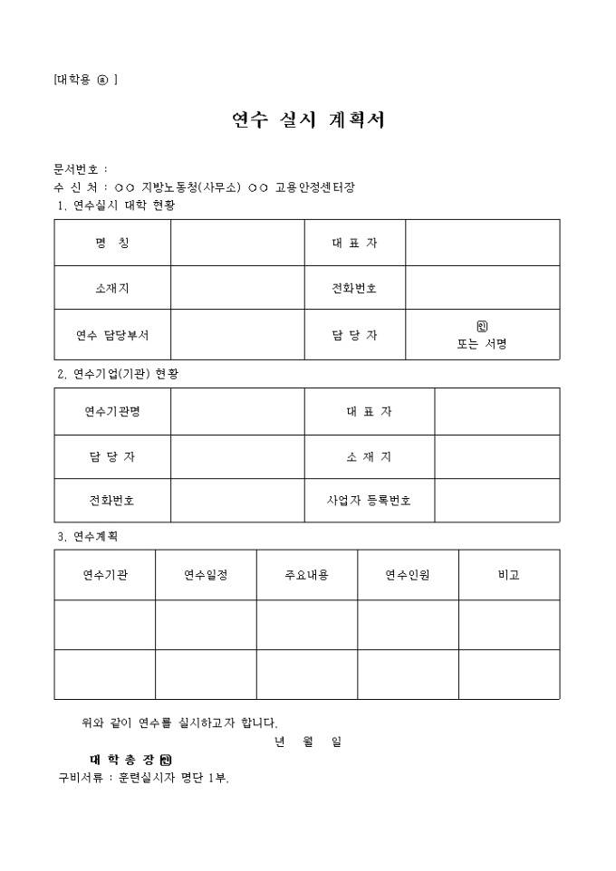 9,000원/월1. 연수실시 대학 현황(명칭, 대표자, 소재지 등)
