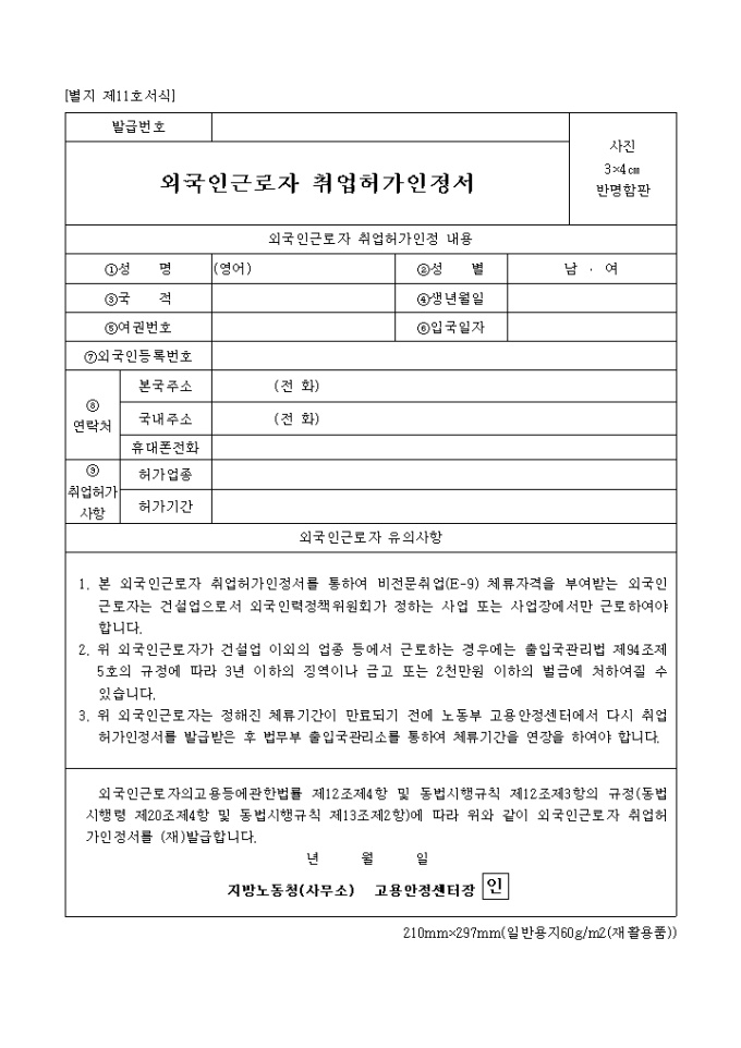 3. 외국인근로자는 정해진 체류기간이 만료되기 전에 노동부 고용안정센터에서 다시 취업허가인정서를 발급받은 후 법무부 출입국관리소를 통하여 체류기간을 연장을 하여야 합니다