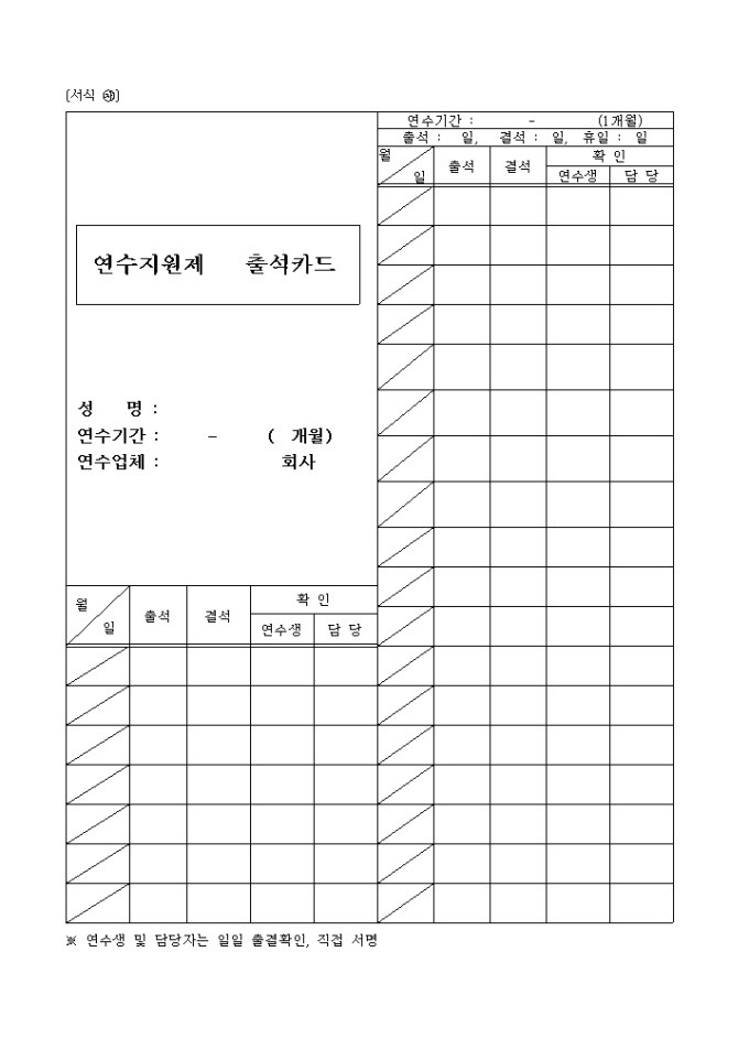 연수지원제 출석카드 양식입니다.