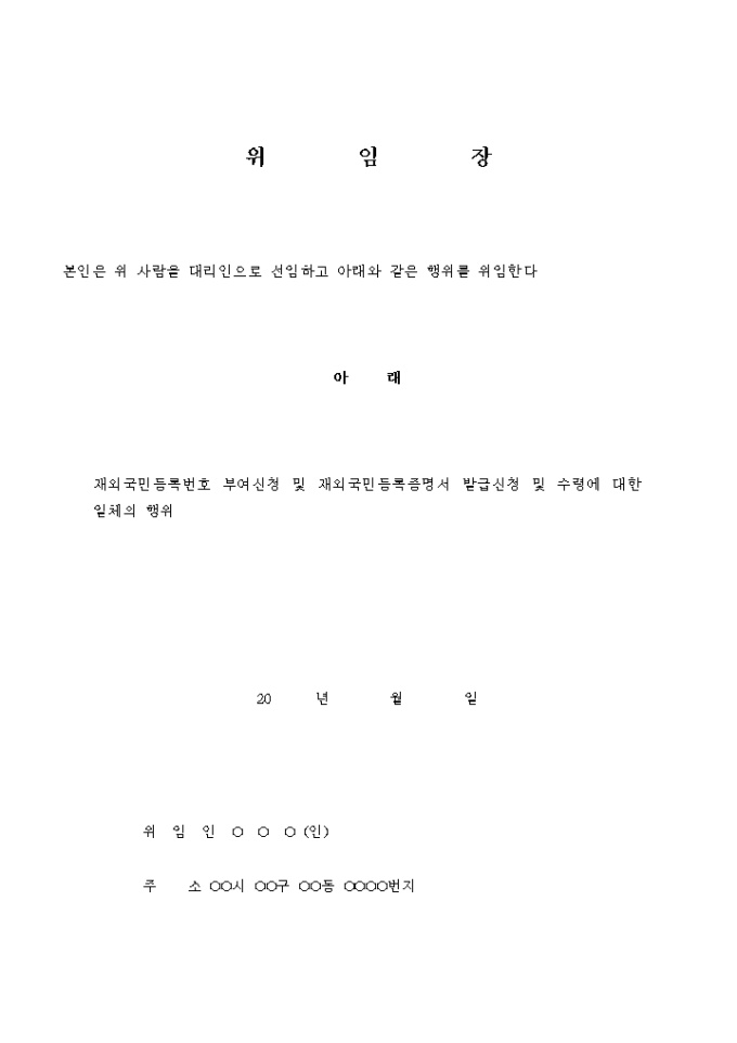 9,000원/월외국인 등록신청에 관련된 사항을 위임하는 위임장입니다.