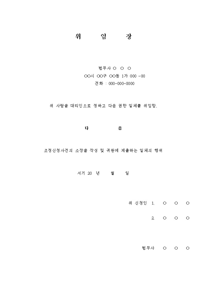9,000원/월조정신청을 위임하는 위임장입니다.