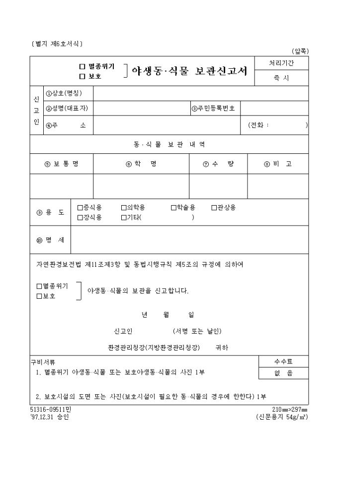 (멸종위기, 보호)야생동, 식물보관신고서
