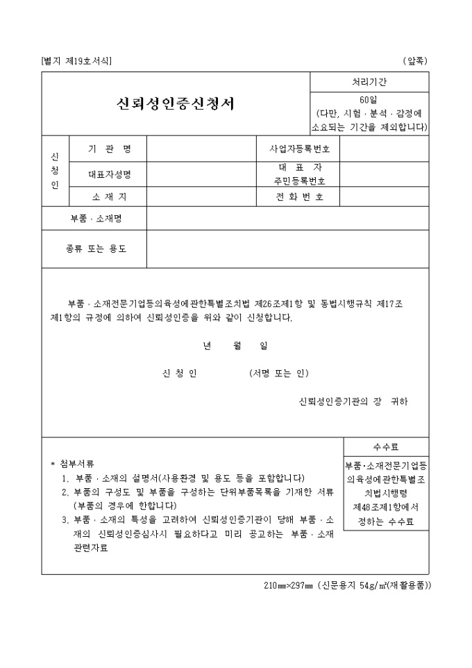 신뢰성인증신청서(별지 제19호서식)