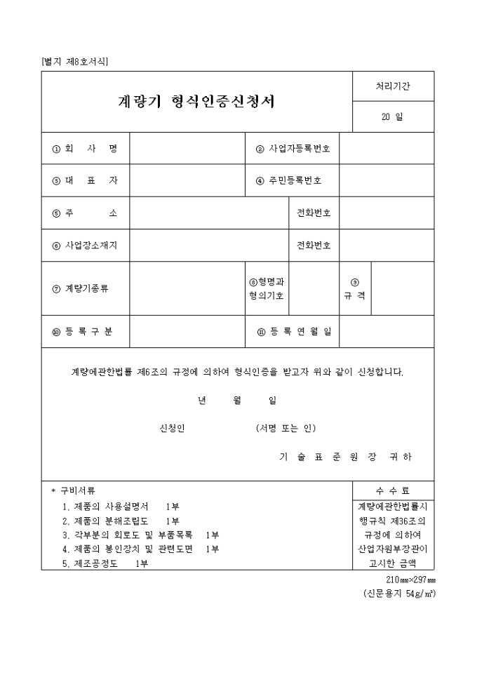 계량기 형식인증신청서(별지 제8호서식)