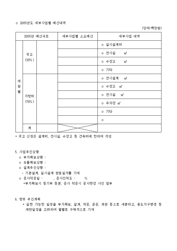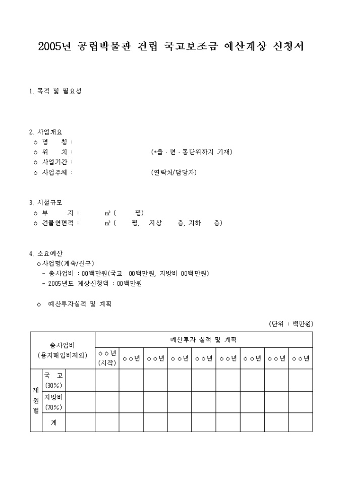 2005년 공공박물관 건립 국고보조금 예산계상 신청서