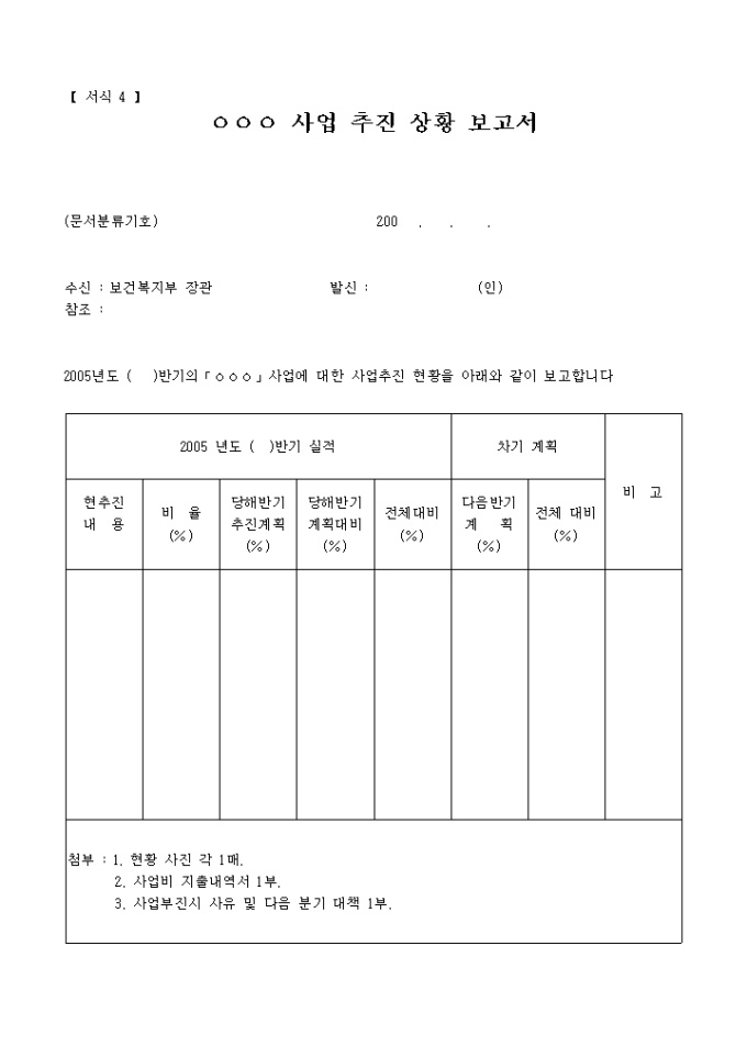 사업추진 상황 보고서(복권기금사업집행)(서식4)